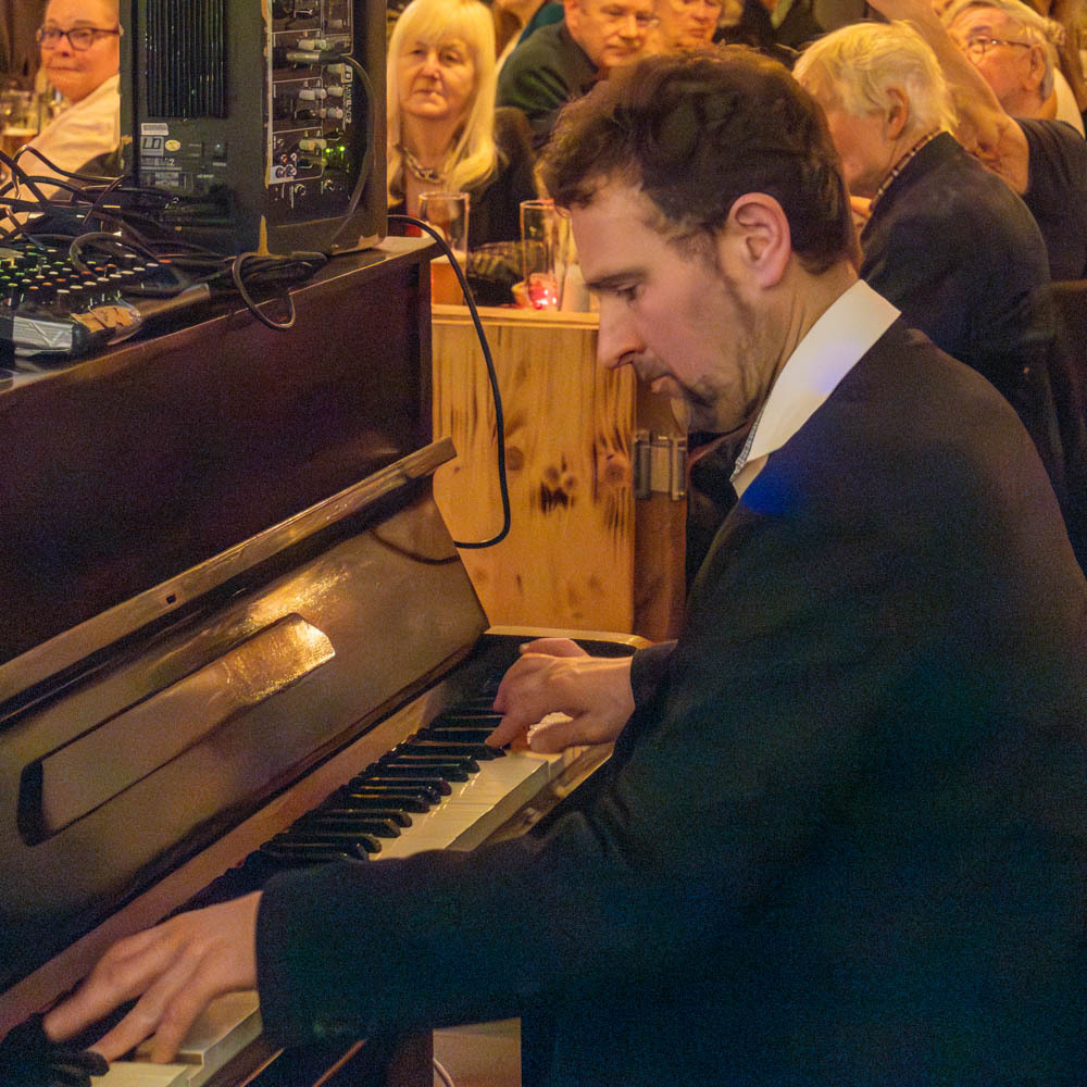 Manchmal häufen sich die Ereignisse. Am Donnerstag konnten wir im Neuen Theater Ffm-Höchst die Gruppe Pasadena Roof Orchestra genießen. Sie wurde 1969 gegründet und pflegt seitdem Musik der 1920er/1930er Jahre. Über die vielen Jahre gab es natürlich einen ständigen Wechsel der Musiker. Trotzdem ist sie ihrem Stil treu geblieben. 1990 hat Duncan Galloway die Leitung übernommen.