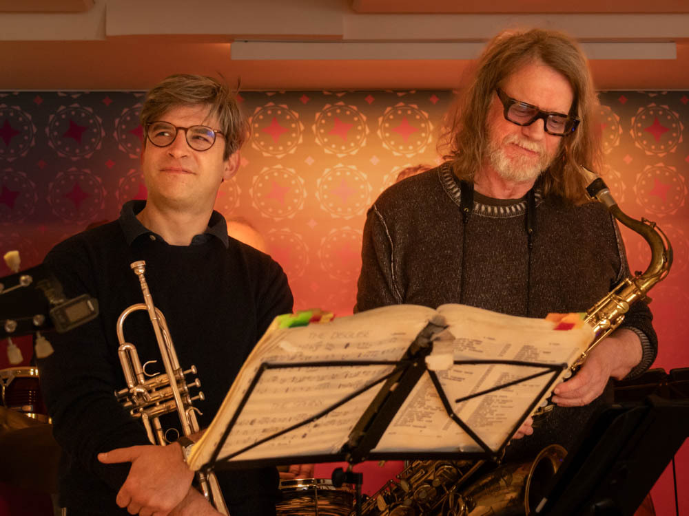 Das Kulturcafé Windrose in Oberursel feiert in diesem Jahr sein 50. Bestehen. Ein monatliches Highlight im Rhein-Main-Gebiet ist die monatliche Jam Session. Am Sonntag trafen sich zum 122. mal spontan hochkarätige Jazz-Musiker und spielten in wechselnden Besetzungen unter Leitung von Ekki leidenschaftlichen Jazz. Irgendwann habe ich die Übersicht verloren. Vermutlich kamen ca. 20 Musiker. Markant waren natürlich die Sängerinnen: Kira Frenk (Interaktive Kinderkonzerte), Ruth Freise (Freise & Friends) und Petra Kemmerzell (2. Vorsitzende Windrose).